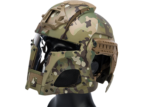 "Works with FMA ARC ears for a full helmet system, and the helmet itself protected my eyes from paintballs, so five stars for me.