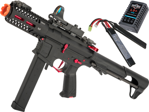 The G&G ARP9 is a unique and exciting entry into the CQB M4 style rifle AEG category. Extremely compact and lightweight, from afar the ARP9 resembles a traditional M4 type rifle, but when one gets closer, they realize the ARP9 is a completely different beast. Based off of the G&G CM16 series of AEGs the ARP9 retains all of the features favored by players but in a unique 9mm style carbine. Using the traditionally solid G&G gearbox, paired with their inline MOSFET, the ARP9 puts out all of the samer performance of a CM16 M4, but in a compact and unique package.