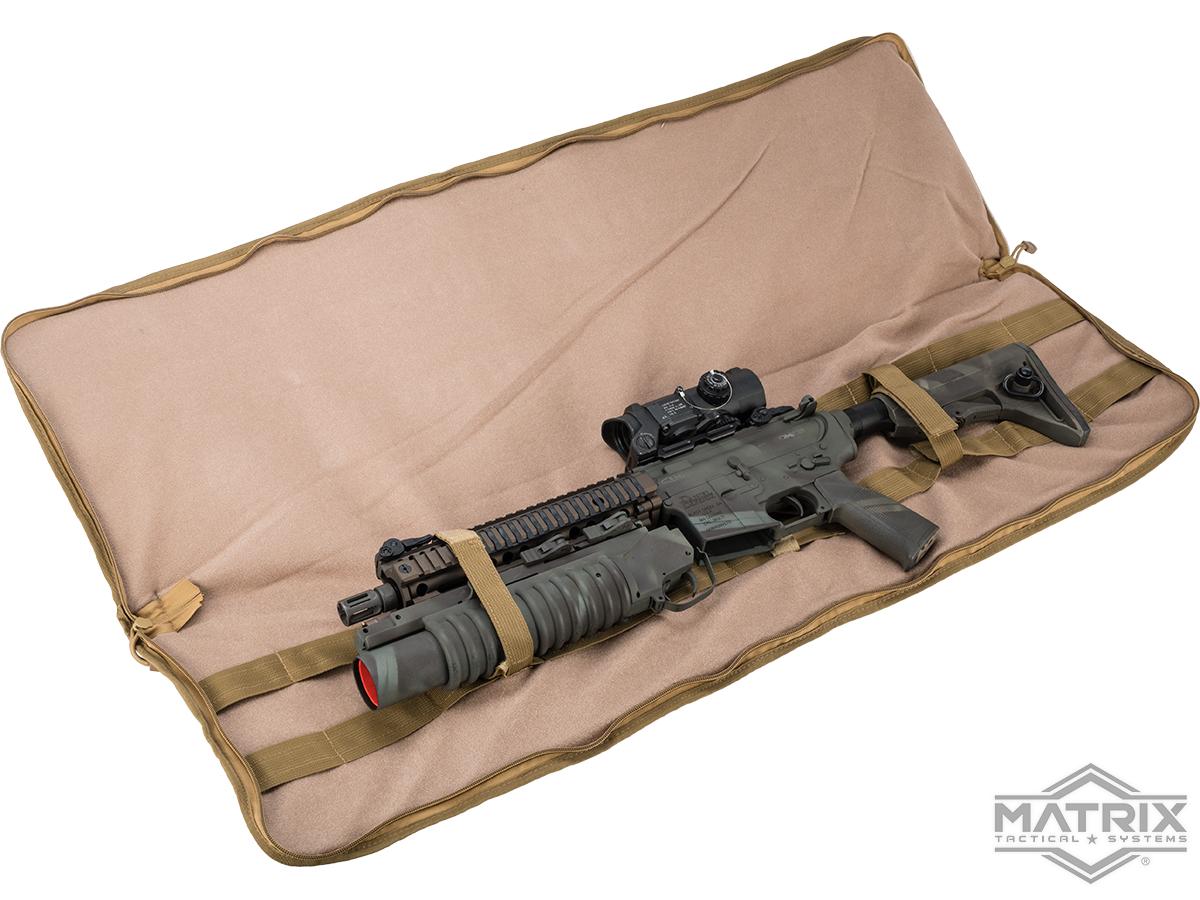 The Matrix Tactical 38" Single Padded Rifle bag is the perfect carrying device and storage for your hunting, simulation, war gaming, and training equipment. Constructed of high quality water/dust resistant material, the Single Padded Rifle bag's main compartment comes with integrated padding and hook & loop straps to secure your rifle.