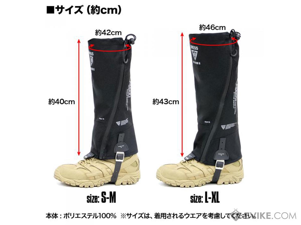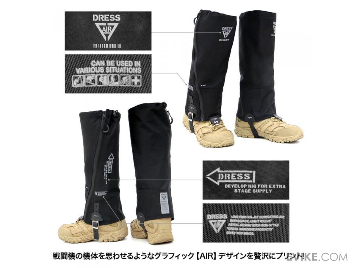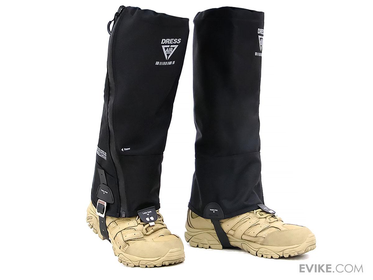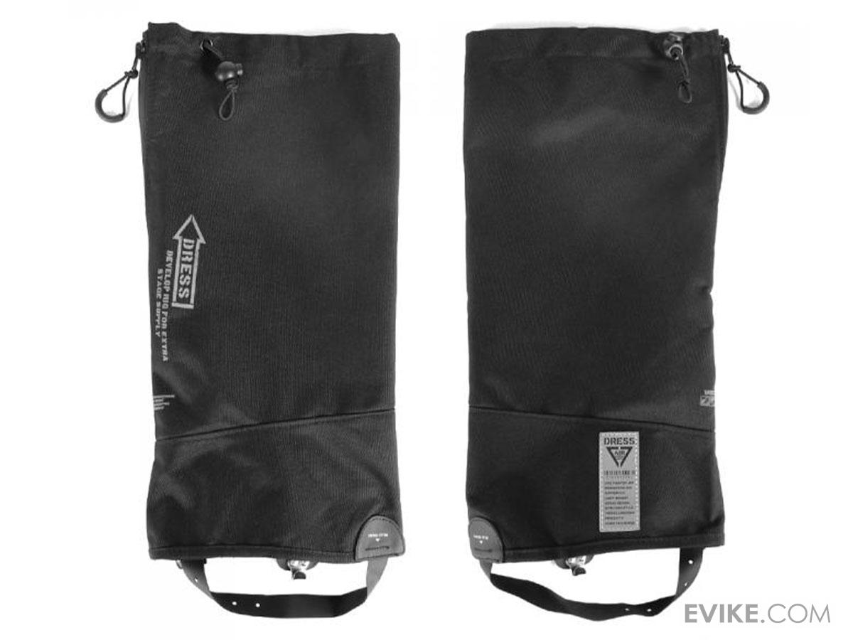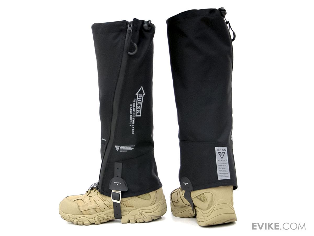 Features Covers from below the knees to the ankles and shuts out dew, rain, mud splashes, gravel, etc. Great for fishing as well as mountain climbing , bikes, cycling and other outdoor activities Worn over the gap between trousers and shoes, a gaiter helps prevent sand, pebbles, rocks, and other potential hitchhikers from getting into your shoes. Made from high density 600d polyester, the Dress Gaiters offer weather resistance to protect your pants from dew, rain, and mud.